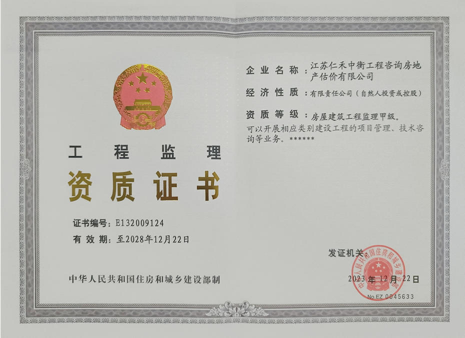 - 房屋建筑監(jiān)理甲級(jí)證書(shū)